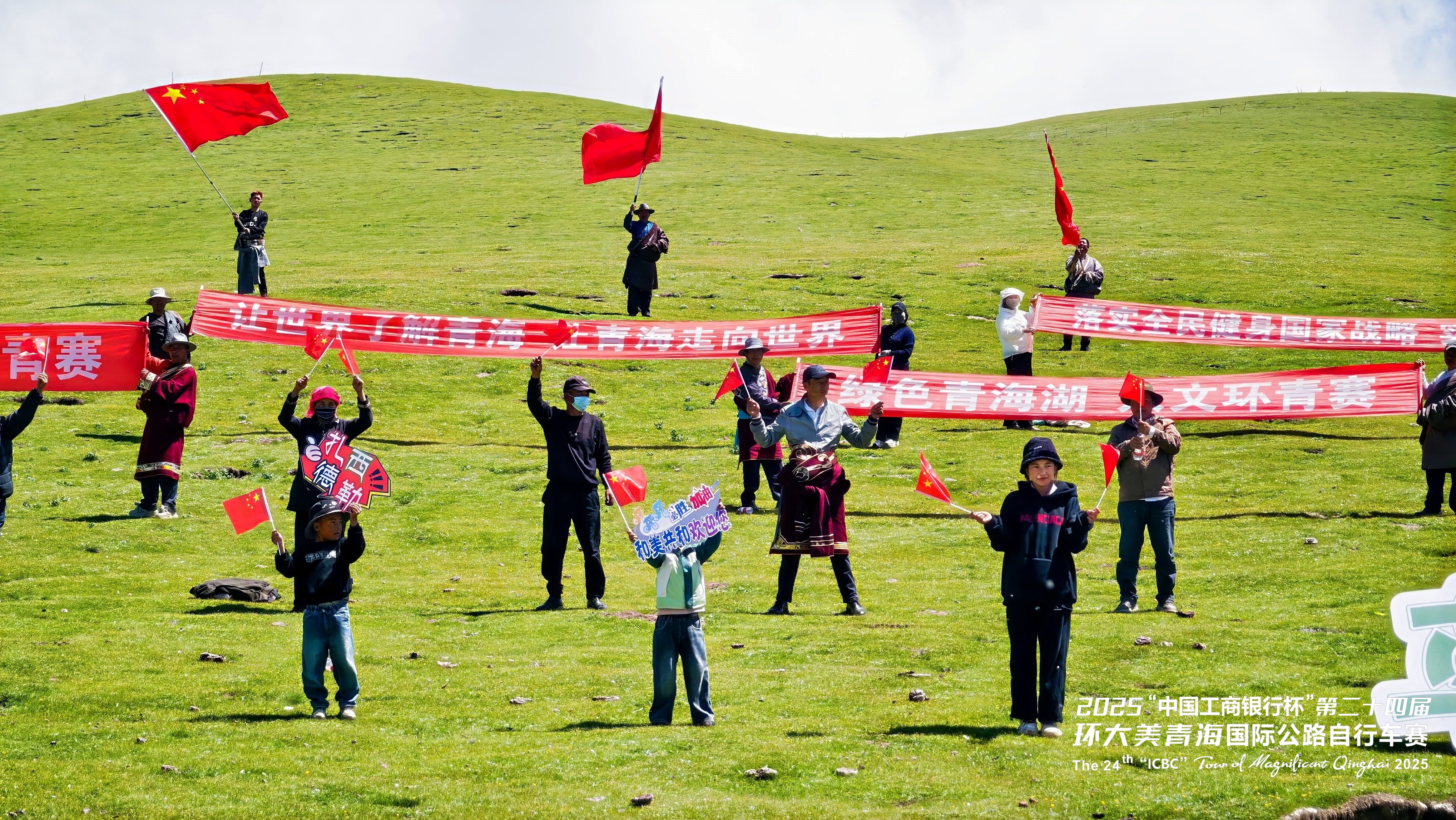 圖為環(huán)青賽期間,沿途的群眾、小朋友們手持“讓世界了解青海 讓青海走向世界”“綠色青海湖 人文環(huán)青賽”等標(biāo)語的橫幅,用燦爛的笑容和真摯的歡呼,向世界展示著青海人民的開放與好客,飄揚(yáng)的橫幅與歡呼聲交織,傳遞出這片土地對八方來客最熱烈的歡迎。