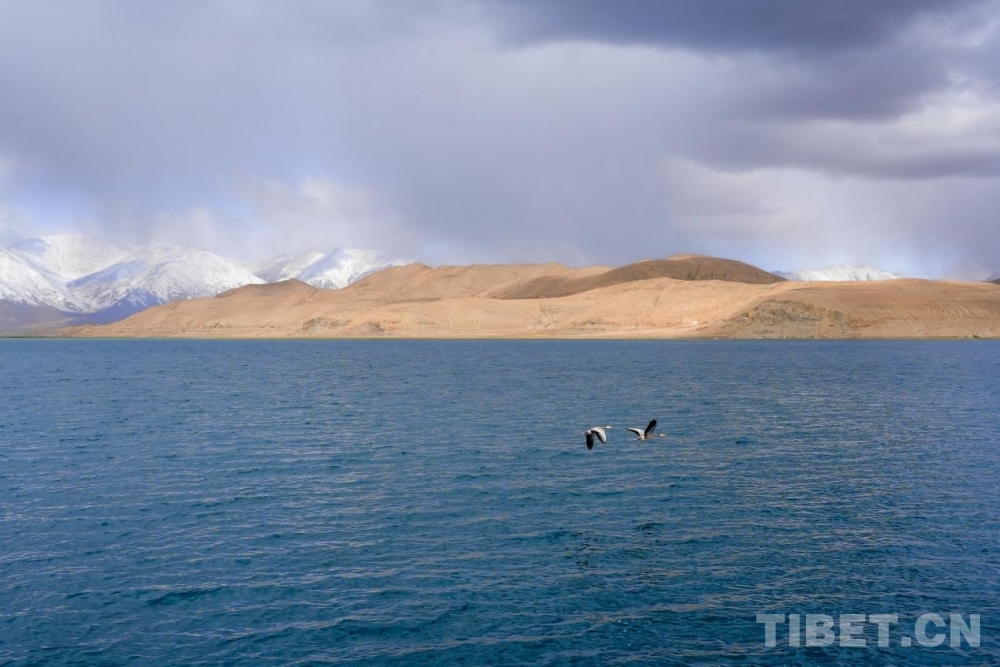 班公湖位于西藏阿里地區(qū)日土縣,湖面海拔4240米,是青藏高原西部最大的湖泊。湖水由東向西含鹽量遞增,因而在陽(yáng)光照射下,班公湖宛如一塊巨大的藍(lán)綠漸變琥珀綴于廣袤沙原。湖中央的鳥島上,鳥舞蹁躚,鷗鷺齊飛,不僅有棕頭鷗、斑頭雁,還有國(guó)家一級(jí)保護(hù)動(dòng)物黑頸鶴等珍稀鳥類。每逢夏季,成千上萬的鳥在此繁衍后代,遠(yuǎn)眺鳥島,能見一派沙鷗翔集、群鳥歸巢的壯觀景象。(中國(guó)西藏網(wǎng) 記者/邊子捷)
