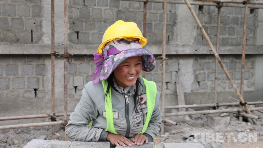 圖為在工地勞動的次仁卓嘎