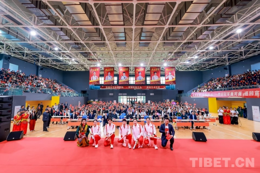 當天上午,奧運冠軍馬龍(乒乓球)、龍道一(跳水)、陳清晨(羽毛球)、李倩(拳擊)、郭崎琪(藝術(shù)體操)等走進西藏藏醫(yī)藥大學(xué),受到師生們的熱烈歡迎。