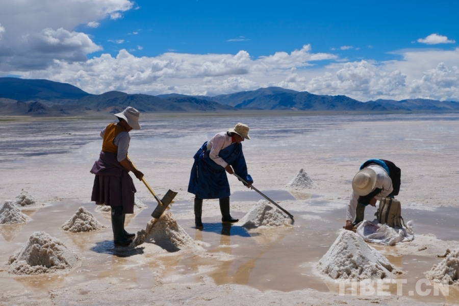 擦咔鄉(xiāng)素有“藏北鹽倉”之稱,其“章倉三湖”鹽礦資源豐富,采鹽史可追溯至千年前。古時(shí),當(dāng)?shù)佧}幫以羊馱牛背的方式,將鹽巴運(yùn)往普蘭、日喀則甚至印度、尼泊爾等地,形成了著名的“鹽羊古道”。這一傳奇不僅見證了當(dāng)?shù)厝罕姷闹腔叟c勤勞,更在1951年支援先遣連進(jìn)藏時(shí)發(fā)揮了重要作用,被譽(yù)為“革命的鹽、民族團(tuán)結(jié)的鹽”。