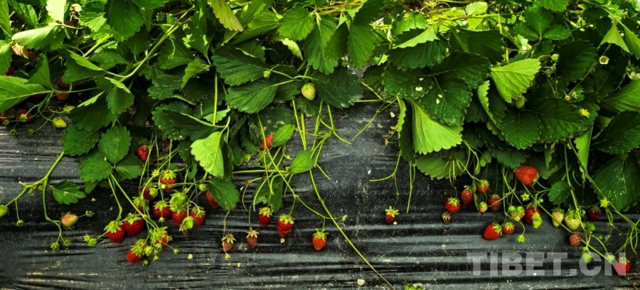 圖為才納園區(qū)溫室里長勢喜人的草莓 攝影:劉莉