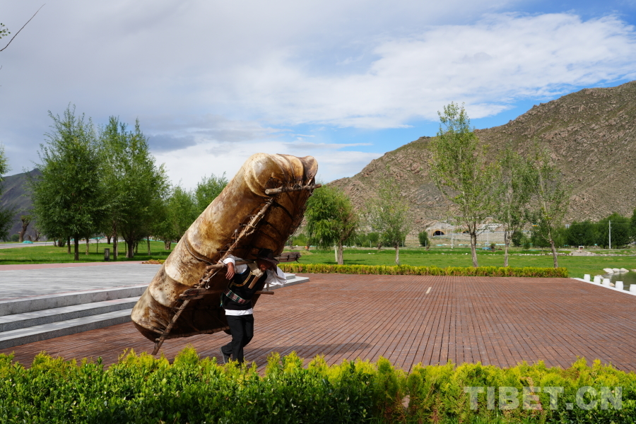 牛皮船每條重七十到八十斤,要背著這樣的重量跳舞是很不容易的。但是拉巴次仁說,如果表演的人都不享受這個過程,不熱愛這項藝術(shù),舞蹈也就失去了它的韻味。一次他們?nèi)ダ_演出,舞蹈隊伍要從宇拓路的一端背著牛皮船一邊表演一邊前進,直到另一端結(jié)束,近一千米的距離,隊員們都累得滿頭大汗,但是大家都咬牙堅持了下來。