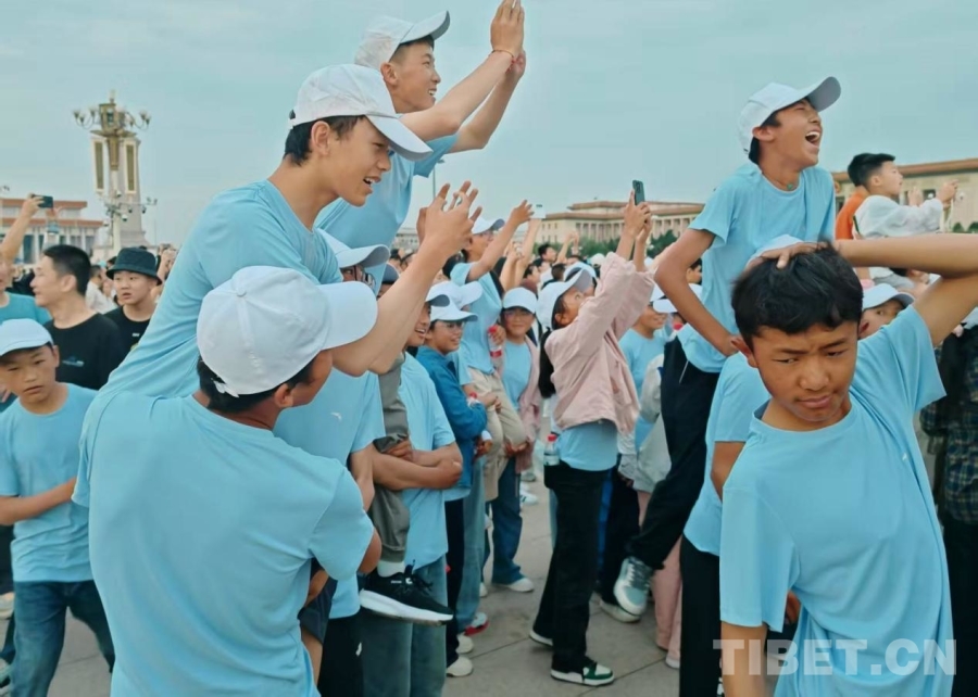 圖為參加“山河同脈·京華筑夢”研學(xué)活動的西藏日喀則定日縣中學(xué)生們在天安門廣場 攝影:張源