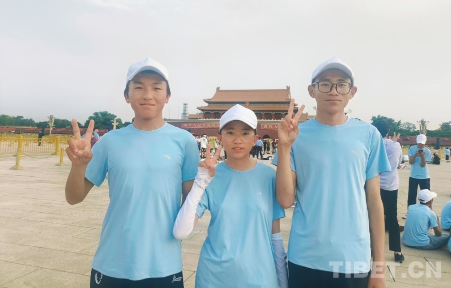 圖為參加“山河同脈·京華筑夢”研學(xué)活動的西藏日喀則定日縣中學(xué)生達娃次仁(左)、旦增桑旦(中)和古入曲桑(右)在天安門廣場上 攝影:趙釗