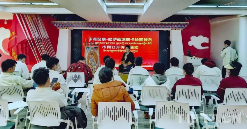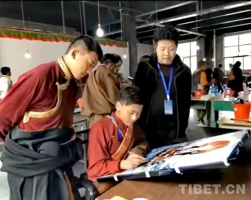 圖為朗杰參加唐卡繪畫技藝市民公開傳習(xí)活動
