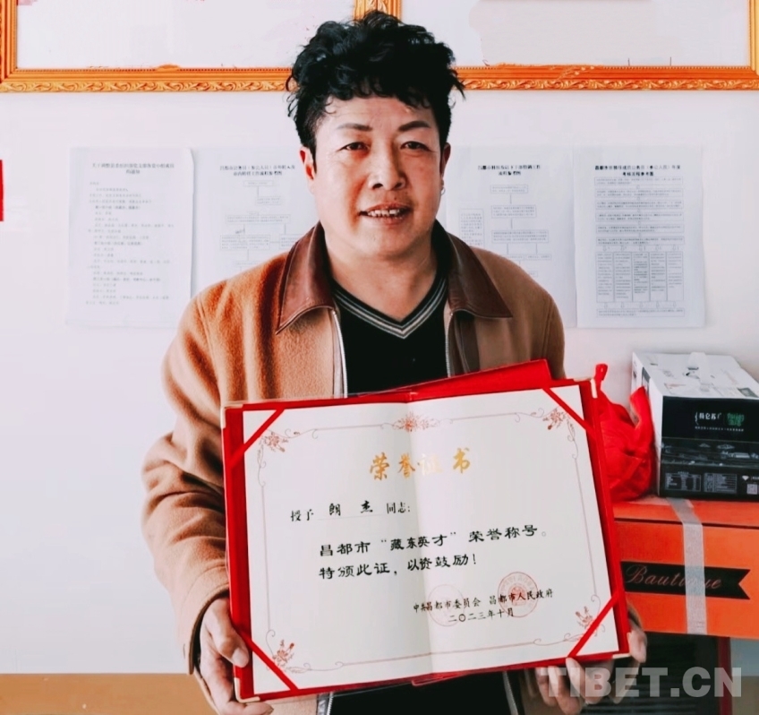 圖為朗杰被授予昌都市“藏東英才”榮譽(yù)稱號