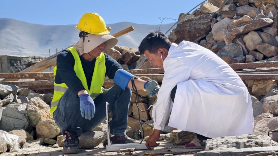 健康守護網,筑牢重建防線。月初頂層澆筑時,施工隊員老張不慎踩中鐵釘。駐村工作隊立刻協(xié)同村醫(yī)貢嘎旦增現(xiàn)場處置,全程跟蹤治療確保傷口未感染。貢嘎旦增的足跡遍布工地,開展健康服務5輪,測量血壓47人次,發(fā)放常用藥品30余份,覆蓋200余人。鄉(xiāng)衛(wèi)生院院長為19名群眾定制慢性病方案,藏醫(yī)拉姆的“呼吸調節(jié)法”更有效舒緩了70余人的心理焦慮。