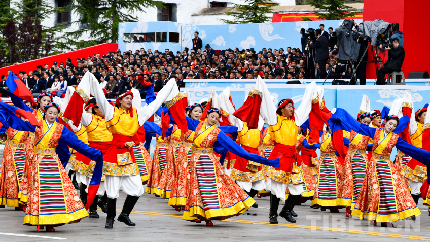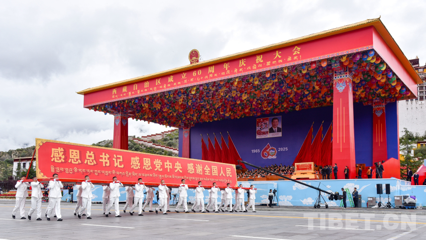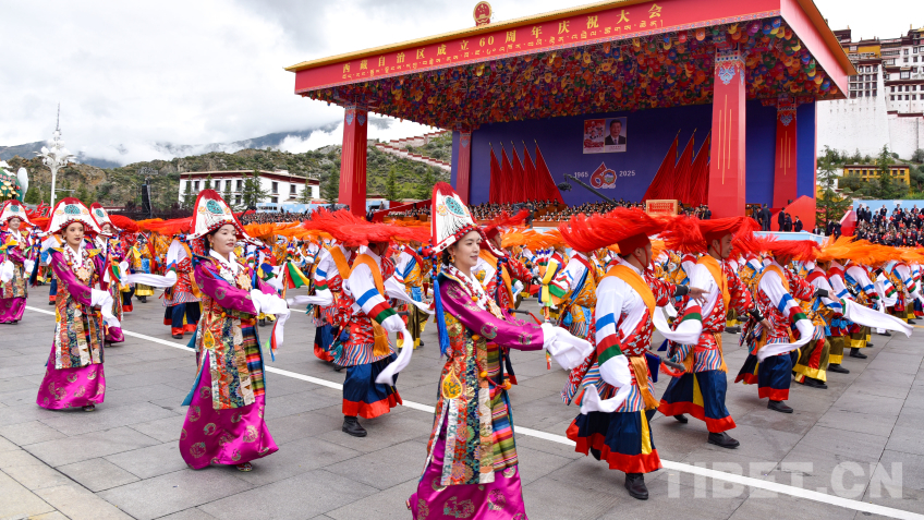 圖為西藏自治區(qū)成立60周年慶祝大會(huì)群眾游行 攝影:趙振宇