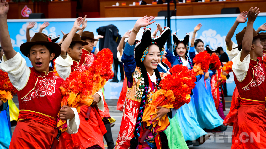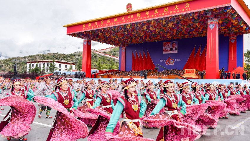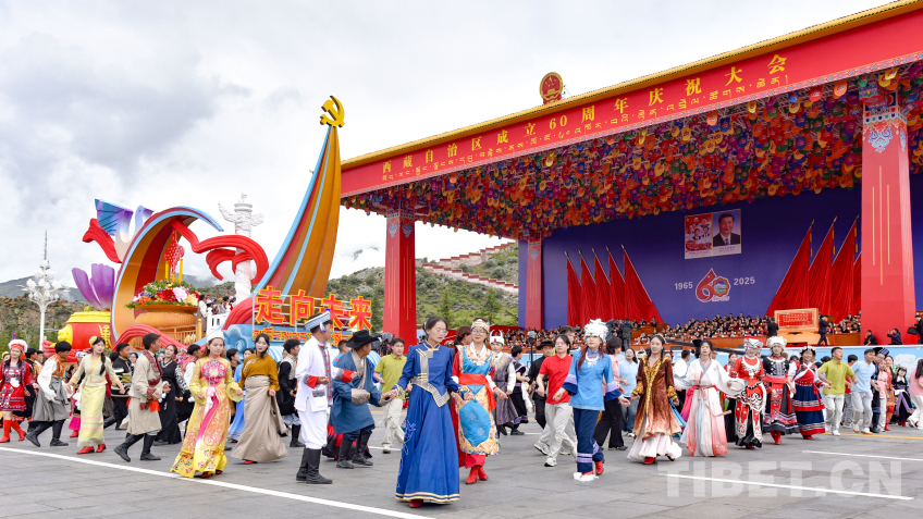 中國(guó)西藏網(wǎng)訊 8月21日上午,西藏自治區(qū)成立60周年慶祝大會(huì)在拉薩隆重舉行。慶祝大會(huì)舉行充滿吉祥喜慶氣氛的盛大群眾游行。游行分為“旗幟引領(lǐng)”“四件大事”“奮進(jìn)新時(shí)代”“走向未來”4個(gè)單元,26個(gè)群眾游行方隊(duì)、彩車,在歡快的音樂中依次行進(jìn)。各族群眾身著絢麗多彩的服飾,跳起熱情歡快的舞蹈,表達(dá)過上幸福生活的喜悅之情、對(duì)黨和國(guó)家的感恩之情。(中國(guó)西藏網(wǎng) 記者/王淑 趙振宇 德吉卓瑪 次旦拉姆 旦曲 賈華加 趙釗 姚浩然 劉莉 邊子捷 馮重霖 楊眉笑)