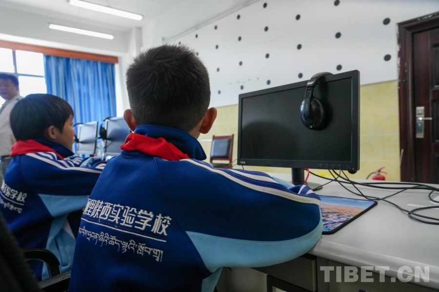 圖為在西藏阿里陜西實(shí)驗(yàn)學(xué)校,孩子們正在上計(jì)算機(jī)課 攝影:邊子捷