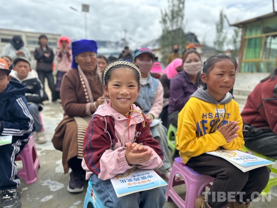圖為旁多鄉(xiāng)寧波村兒童收到實(shí)踐團(tuán)發(fā)放的中醫(yī)藥文化讀本