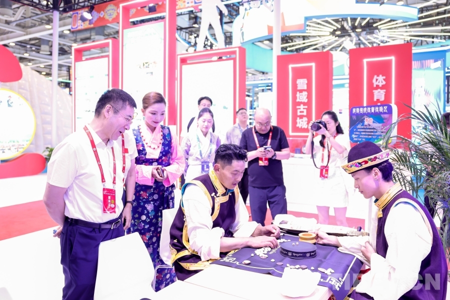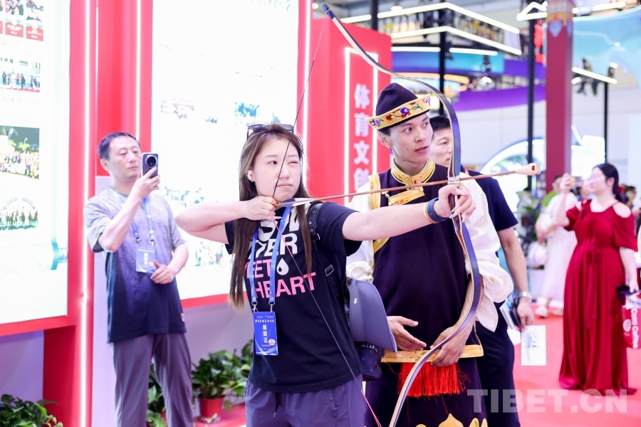 專業(yè)藝術(shù)團(tuán)精心排演的《幸福西藏》節(jié)目在西藏展廳輪番展演;搭建響箭、秀茲(藏式骰子)體驗區(qū),高度還原世界海拔最高的龍舟賽——西藏自治區(qū)端午節(jié)牛皮船(龍舟)賽開幕式場景,吸引了廣大游客駐足觀看,踴躍參與民族傳統(tǒng)體育項目,參與“畫龍點睛”儀式。另外精心準(zhǔn)備的體育文創(chuàng)產(chǎn)品,深受游客喜愛,爭相領(lǐng)取。