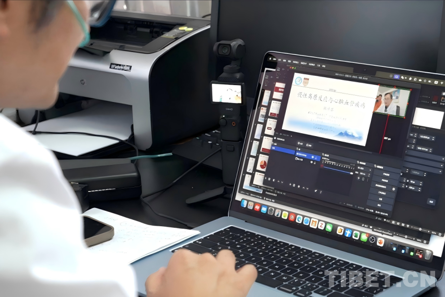 在阿里地區(qū)人民醫(yī)院的行政樓辦公室內(nèi),來(lái)自上海華山醫(yī)院神經(jīng)外科、作為第25批“博士服務(wù)團(tuán)”成員援藏的主治醫(yī)師杜倬嬰,正專(zhuān)注研究一項(xiàng)“新技術(shù)”。桌面上,一臺(tái)口袋相機(jī)運(yùn)行著,旁邊電腦屏幕上同步顯示相機(jī)所拍攝的畫(huà)面,同時(shí)呈現(xiàn)的還有一份關(guān)于高原反應(yīng)與心腦血管疾病的課程講義。“這是一套直播系統(tǒng),不過(guò)我現(xiàn)在還在學(xué)習(xí)怎么使用?!爆F(xiàn)任阿里地區(qū)人民醫(yī)院黨委委員、副院長(zhǎng)的杜倬嬰笑著展示初見(jiàn)雛形的成果。