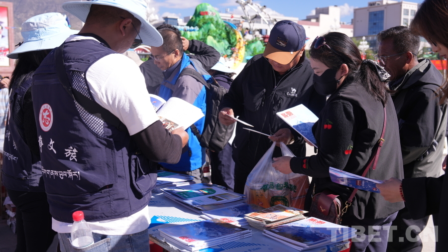 圖為活動(dòng)現(xiàn)場(chǎng)向市民和游客發(fā)放拉薩文旅宣傳資料