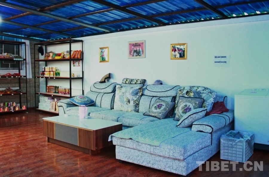 尼吉拉姆家在陜西援建邊境小康示范新居的一排排樓房中靠路邊一戶。走進戶門,院子搭著棚頂,形成了一個大的會客室,墻邊一溜柜子,上邊擺滿飲料、生活用品等,就是一個小小的便民商店了。這只是尼吉拉姆“產(chǎn)業(yè)”中的一項,她和丈夫羅啟明還經(jīng)營一家養(yǎng)雞場、兩人都擔任護邊員等,加上國家邊境補貼、草場補貼等,一年下來能有幾十萬元收入。