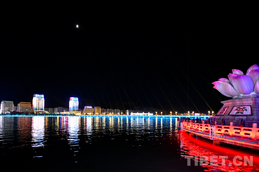 圖為國慶前夕拉薩河畔璀璨燈光 攝影:趙振宇