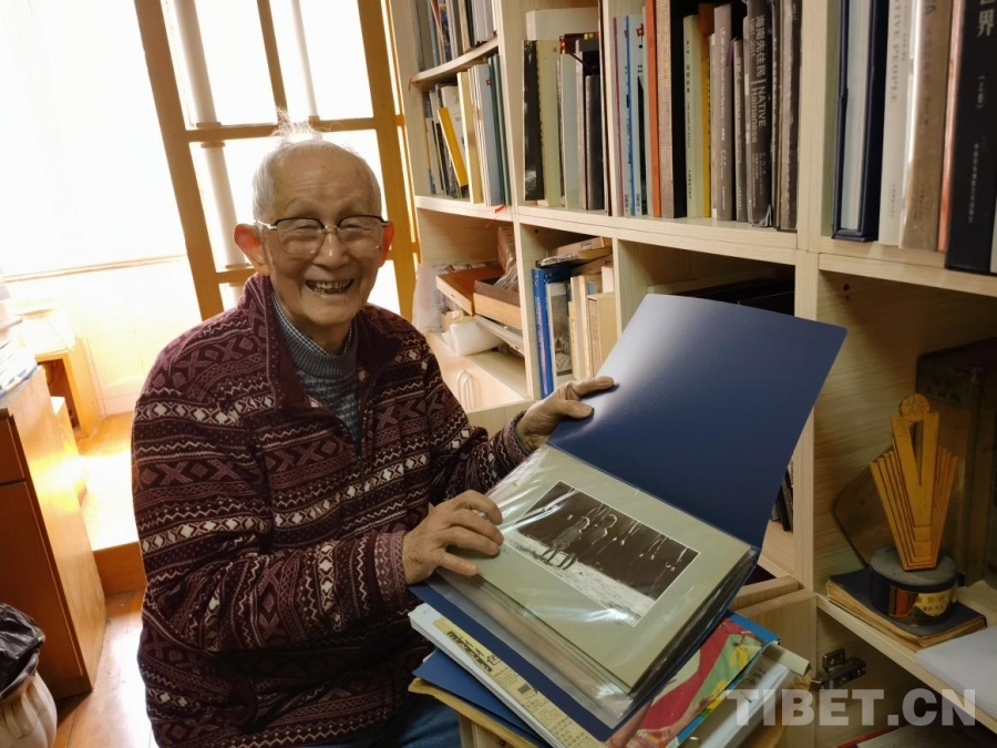 3月21日,我懷揣相冊,專程登門拜訪丁遵新先生。來到丁先生家,一壁字畫,滿屋書香。92歲高齡的先生,依舊精神矍鑠,思維敏捷。我說明來意,攤開相冊,請先生辨認這組西藏照片是否出自他手?先生凝視著照片,一時語塞,說:“當(dāng)年湖北團只有我一名攝影記者,這些相片肯定是我拍的?!奔又啵舷壬M到書房翻騰了好久,終于又找出兩張當(dāng)年的西藏照片,其中一張為罕見彩色印刷品,加上我母親保存的,總計12幅。