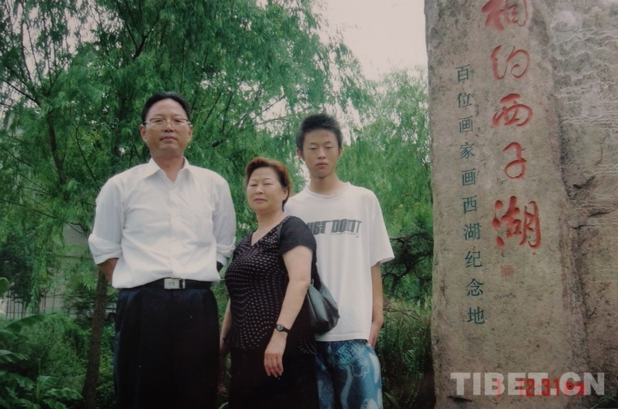 圖為王藏江與愛(ài)人、孩子在杭州西湖合影