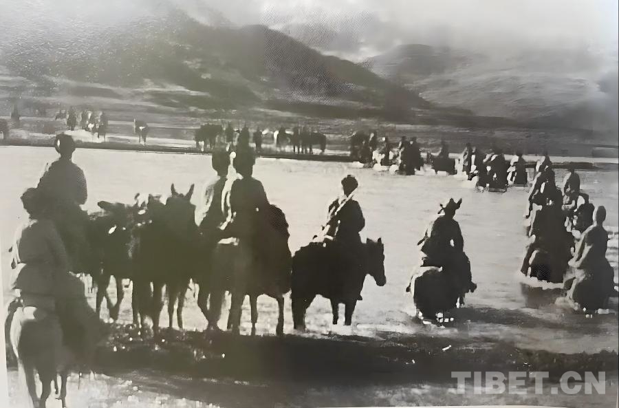 圖為1952年,米福堂精心組織力量,幫助十世班禪和護(hù)送部隊(duì)在通天河七渡口渡過(guò)長(zhǎng)江