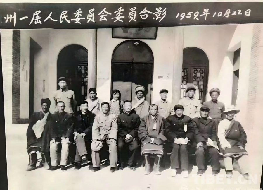 圖為1959年10月,米福堂(前排右二)當(dāng)選玉樹(shù)州第一屆人民委員會(huì)委員