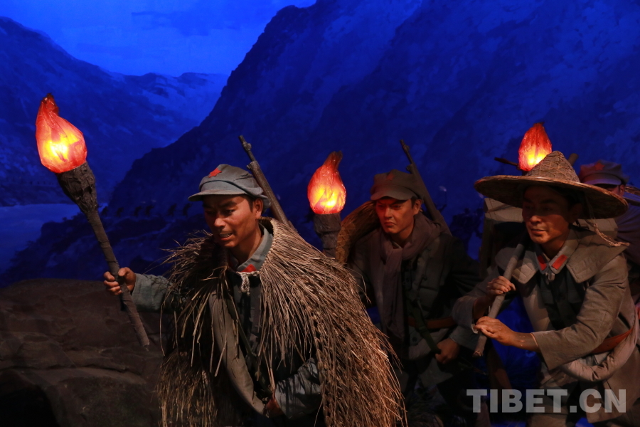 圖為紅軍飛奪瀘定橋紀(jì)念館內(nèi)部的紅軍夜行軍的模型場景 攝影:王妍丹