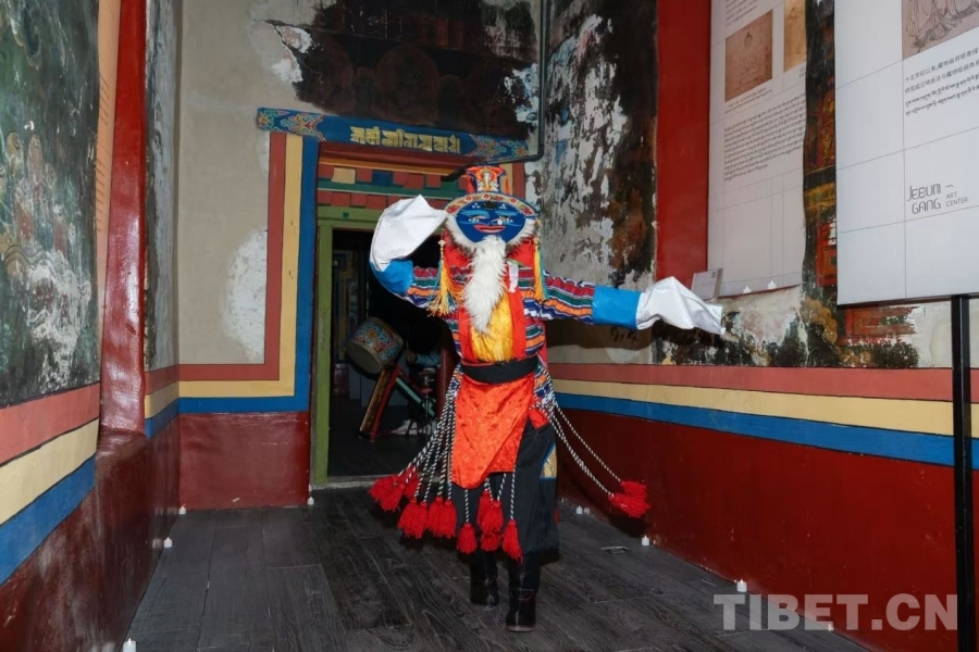 吉本崗藝術(shù)中心作為西藏首座經(jīng)保護(hù)性改造而成的公共文化空間,前身為19世紀(jì)古建——吉崩崗拉康。其獨(dú)特的立體壇城結(jié)構(gòu)、珍貴的《香巴拉之戰(zhàn)》清代愛(ài)國(guó)主義壁畫等文化遺產(chǎn),為此次非遺展演提供了深厚的歷史背景與空間底蘊(yùn)?;顒?dòng)創(chuàng)新采用“雙回字形”沉浸式布局,將古建外廊的常設(shè)展與內(nèi)廊當(dāng)代藝術(shù)展巧妙結(jié)合,設(shè)立八個(gè)固定表演點(diǎn)位。觀眾以“循環(huán)觀演+自由漫游”的方式穿梭其間,在移步換景中感受非遺技藝與當(dāng)代藝術(shù)的交融共鳴,實(shí)現(xiàn)“空間、非遺與新生”的和諧共振。