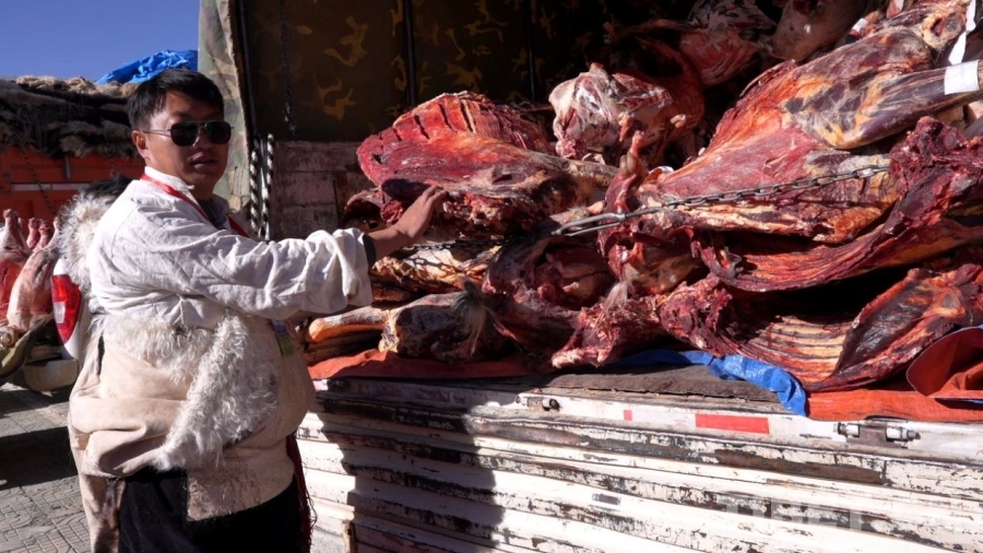 中國西藏網(wǎng)訊 12月15日上午10時許,西藏自治區(qū)那曲市色尼區(qū)物流園區(qū)農(nóng)貿(mào)市場內(nèi)人頭攢動。牧民們正忙碌地從貨車上卸下各類畜牧產(chǎn)品,為即將開幕的那曲市第十八屆畜產(chǎn)品展銷會做最后準備。