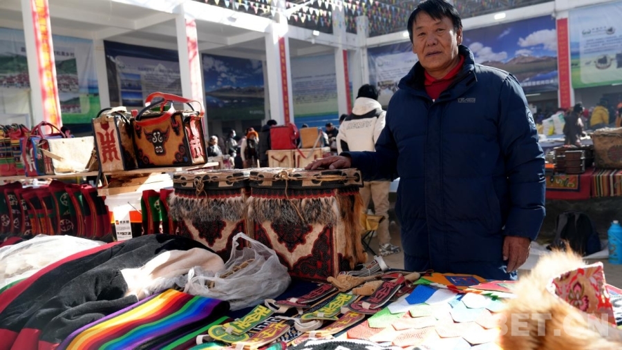 在巴青縣阿秀鄉(xiāng)3村村民彭措的展臺前,充滿牧區(qū)特色的服飾、背包和裝飾品等吸引了不少顧客。彭措告訴記者,所有產(chǎn)品均為純手工制作,技藝從父親傳到他,如今他又傳給了兒子,父子二人共同從事手工藝制作?!叭缃窭习傩丈钤絹碓胶?,對手工藝品的需求也越來越多?!彼吲d地說,“去年展銷會銷售額達到五六萬元,今年希望能賣得更好!”