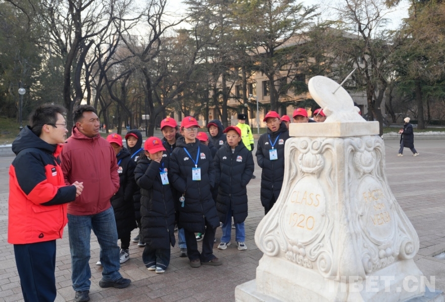 中國西藏網(wǎng)訊 “這是清華日晷,又被稱為1920級日晷,它的作用和故宮太和殿前的日晷一樣,都是用來表示時(shí)間的?!痹谇迦A大學(xué)禮堂前大草坪南端,講解員正在為來自西藏自治區(qū)那曲市色尼區(qū)的青少年足球隊(duì)研學(xué)團(tuán)一行介紹一座寶貴的文物——清華日晷,“日晷基座上寫著‘行勝于言’,是教育我們不管是做科學(xué)研究,還是體育鍛煉,或者在任何工作崗位上做事情要腳踏實(shí)地,言出必行。”