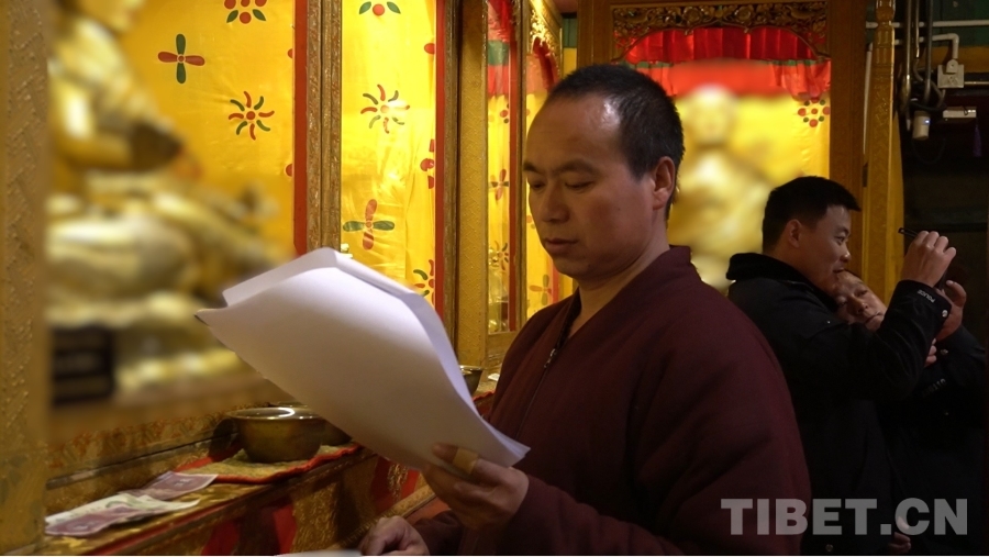圖為敏珠林寺僧人對(duì)照詳單核查文物 攝影:張宇