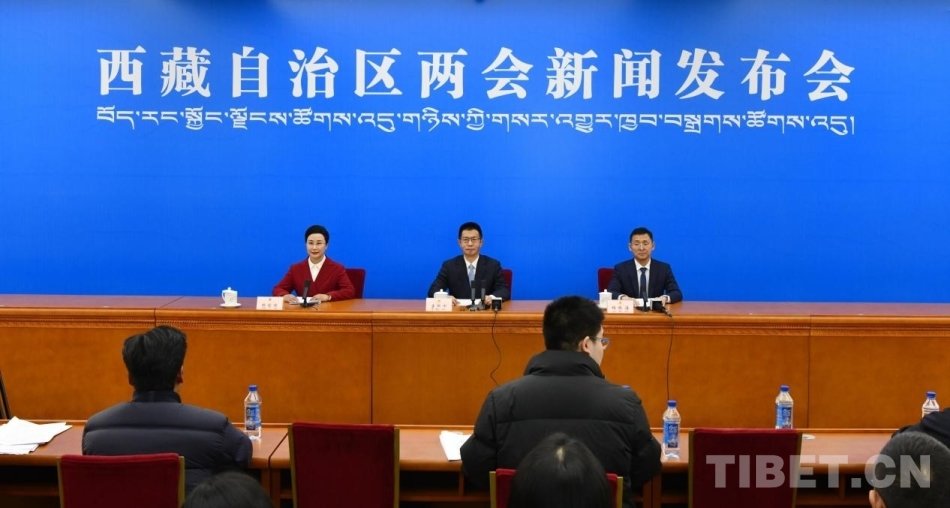 圖為西藏自治區(qū)兩會新聞發(fā)布會現(xiàn)場