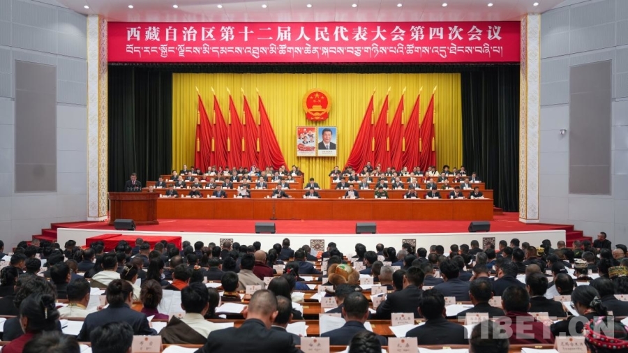 圖為西藏自治區(qū)第十二屆人民代表大會(huì)第四次會(huì)議第二次全體會(huì)議現(xiàn)場(chǎng) 攝影:賈華加