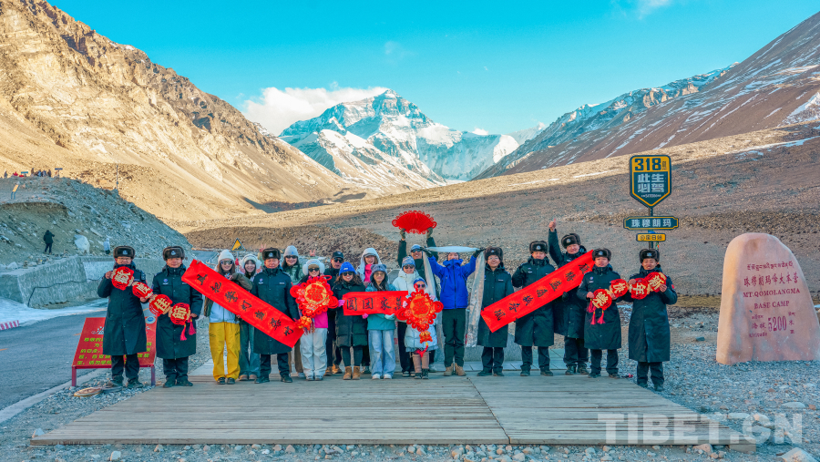 新春佳節(jié)來臨之際,雪峰巍巍。在海拔五千多米的珠峰大本營,西藏邊檢總站日喀則邊境管理支隊珠峰邊境派出所的民警,與來自天南地北的游客圍聚在一起。寒風中飄起溫暖的哈達,一聲聲“扎西德勒”伴著“新年好”,在離天空最近的地方交匯成真摯的祝愿。(中國西藏網(wǎng) 通訊員/葉軼)