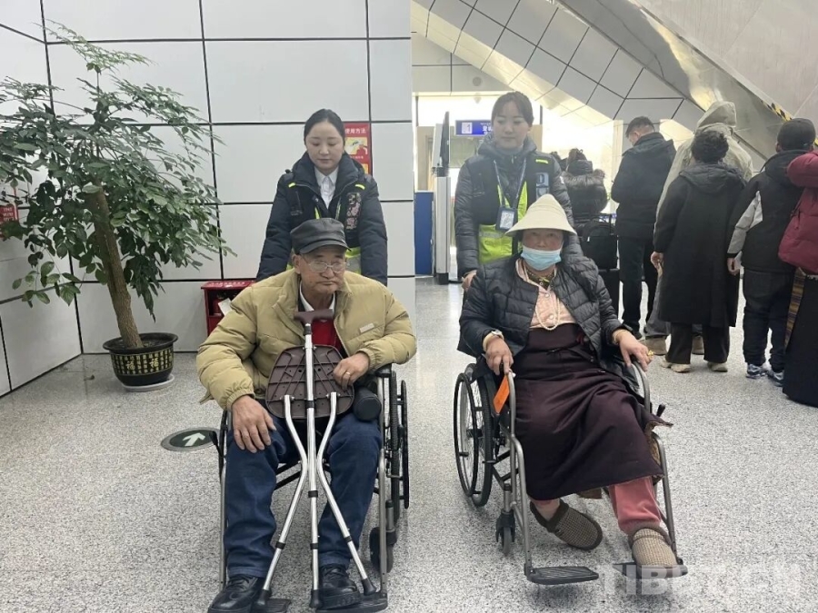 “邦錦梅朵”班組成員陪護(hù)行動(dòng)不便旅客