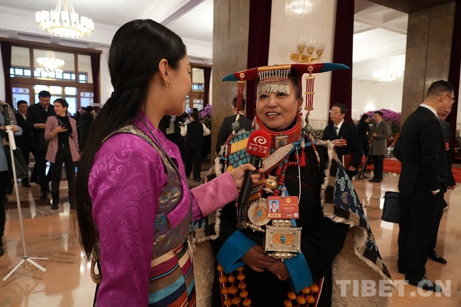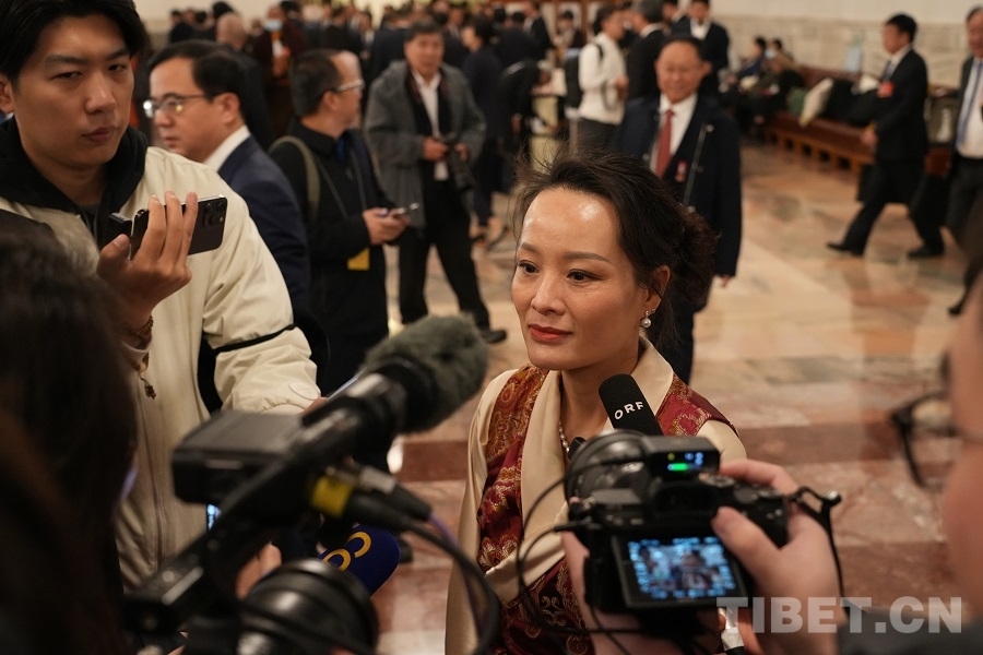 西藏代表團(tuán)格桑卓瑪代表接受媒體采訪 攝影:邊子捷