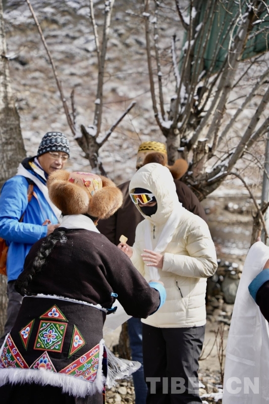 措玉村村民向游客敬獻吉祥哈達