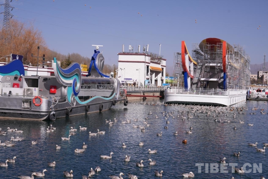 現(xiàn)代化的城市樓宇與連綿的群山相依,成群的斑頭雁、赤麻鴨在拉薩河中游弋,勾勒出人與自然和諧共生的高原圖景。 攝影:張藝彤