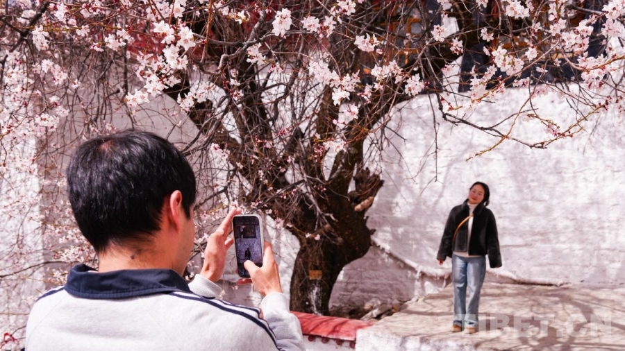 帕邦喀寺盛開的桃花吸引游客打卡拍照 攝影:趙振宇