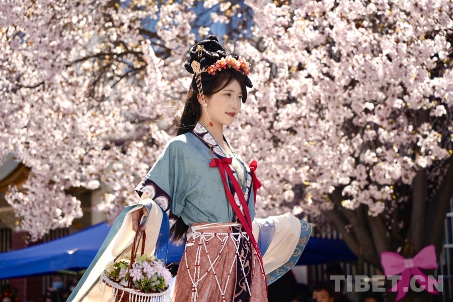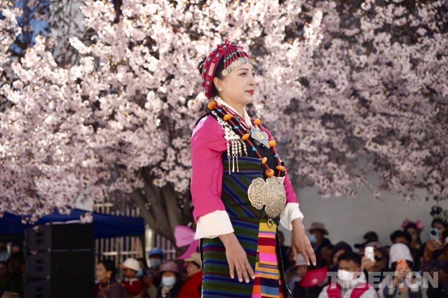 服飾文化是西藏傳統(tǒng)文化的重要組成部分,基本特征為肥腰、長袖、大襟、右衽、長裙、長靴,并配有精美的金銀珠玉飾品。受自然環(huán)境、民風(fēng)民俗及生產(chǎn)方式影響,西藏服飾文化形成了鮮明的地域特色——拉薩服飾典雅莊重,日喀則服飾絢爛奪目,阿里服飾盡顯華貴風(fēng)范……傳統(tǒng)服飾與桃花交相輝映,為觀眾呈現(xiàn)了一場流光溢彩的視覺盛宴。(中國西藏網(wǎng) 記者/德吉卓瑪)