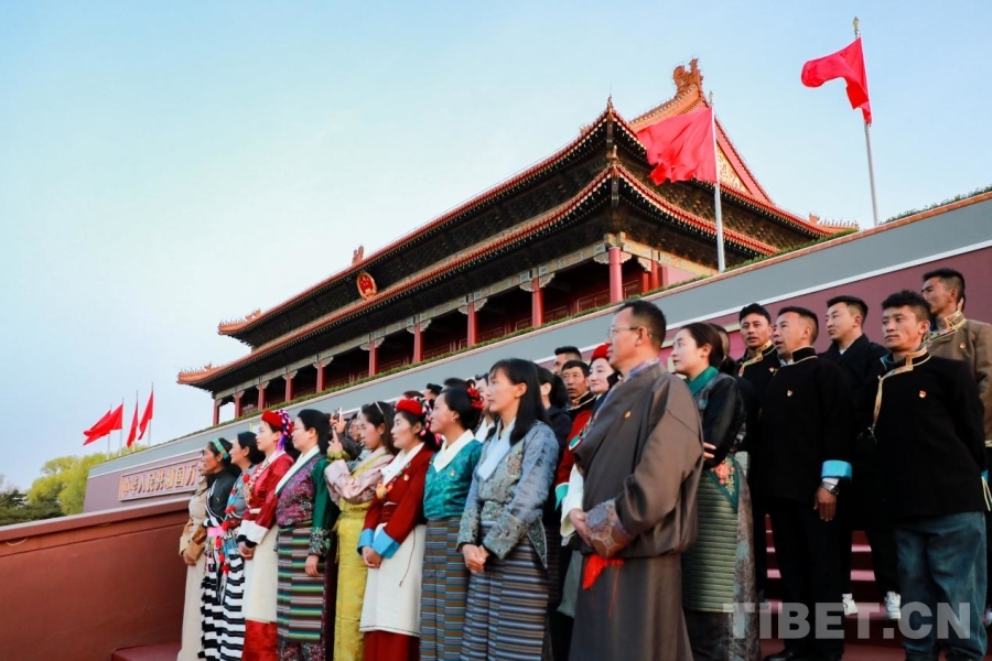 來自錯那市的代表團(tuán)成員在天安門前合影留念 攝影:陳衛(wèi)國