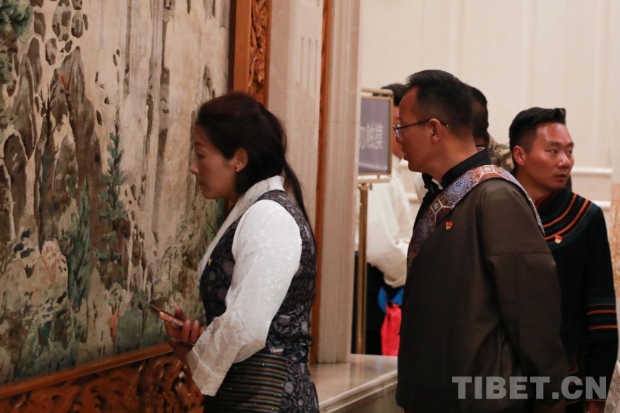 人民大會堂里,代表團(tuán)成員認(rèn)真參觀 攝影:陳衛(wèi)國