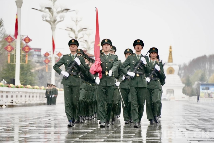 中國(guó)西藏網(wǎng)訊 雨雪紛飛,紅旗獵獵,布達(dá)拉宮廣場(chǎng)在飛雪中更顯莊嚴(yán)。3月28日上午,西藏自治區(qū)各族各界干部群眾在拉薩布達(dá)拉宮廣場(chǎng)參加升旗儀式,慶祝西藏百萬(wàn)農(nóng)奴解放紀(jì)念日。