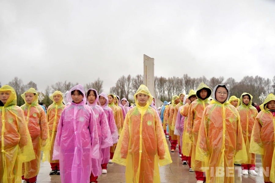 3月28日,來(lái)自拉薩市的學(xué)生群體參加升旗儀式