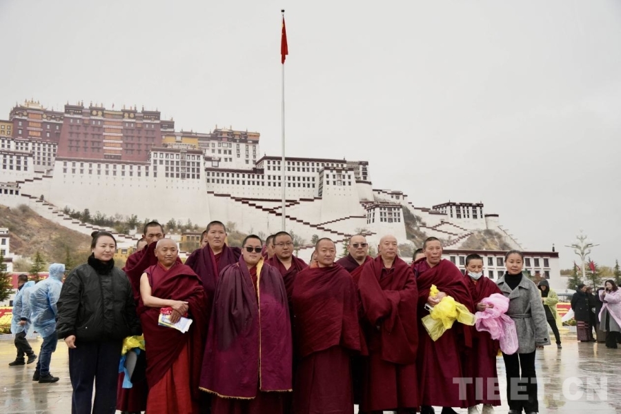 參加升旗儀式的寺院僧尼在布達(dá)拉宮廣場(chǎng)合影留念
