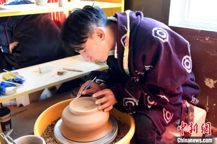 四川省阿壩州壤塘縣大力推動文化扶貧 牧民子弟成為藏陶師