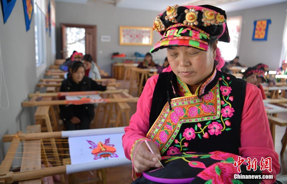 圖為1月13日,四川瀘定縣烹壩鎮(zhèn)的繡娘們正在忙碌。中新社記者 劉忠俊 攝