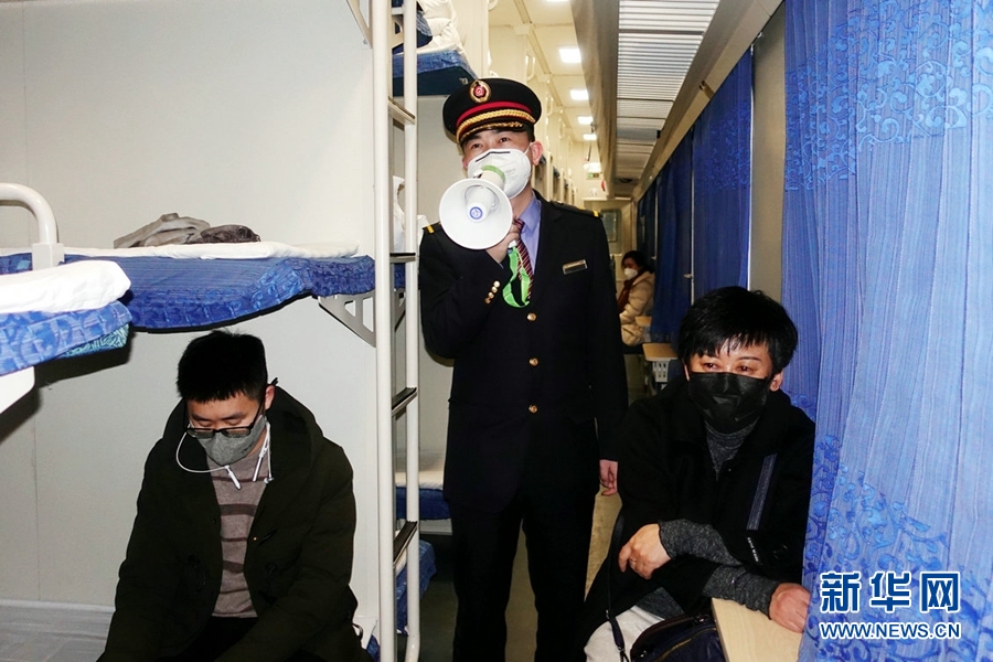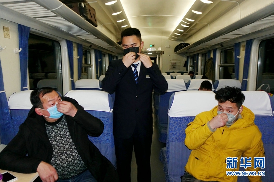 西寧客運(yùn)段成都三組乘務(wù)員為旅客宣傳防疫知識(shí)。新華網(wǎng) 郝寶君 攝