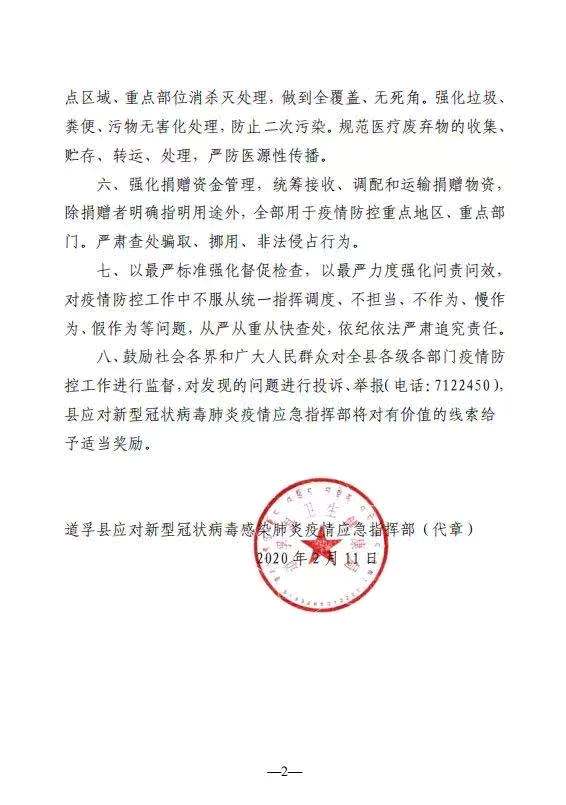 通告中還鼓勵(lì)社會(huì)各界和廣大人民群眾對(duì)全縣各級(jí)各部門疫情防控工作進(jìn)行監(jiān)督,對(duì)發(fā)現(xiàn)的問題進(jìn)行投訴、舉報(bào)(電話:0836—7122450), 縣應(yīng)對(duì)新型冠狀病毒肺炎疫情應(yīng)急指揮部將對(duì)有價(jià)值的線索給予適當(dāng)獎(jiǎng)勵(lì)。(圖據(jù)道孚縣委宣傳部官方微信)