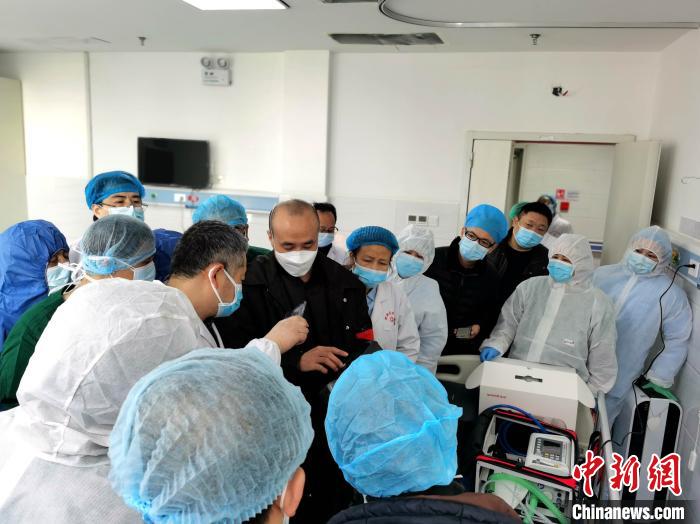圖為青海醫(yī)療隊查看醫(yī)療物資。青海大學附屬醫(yī)院 攝